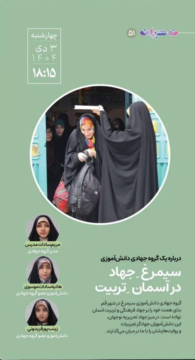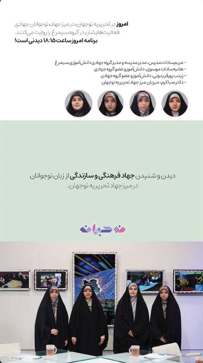 گروه جهادی دانشآموزی سیمرغ به عنوان مهمان برنامهی «میز جهاد» در برنامه تحریریه نوجهان، از تجربههای فرهنگی و تربیتی خود گفت؛